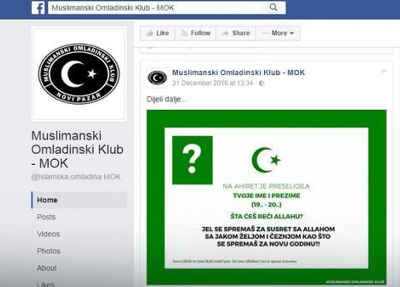 Na “umrlicama” se nalaze pitanja Šta ćeš reći Allahu? i Je l’ se spremaš za susret sa Allahom sa jakom željom i čežnjom kao što se spremaš za Novu godinu?, a kao autor plakata se navodi Muslimanski omladinski klub (MOK).
