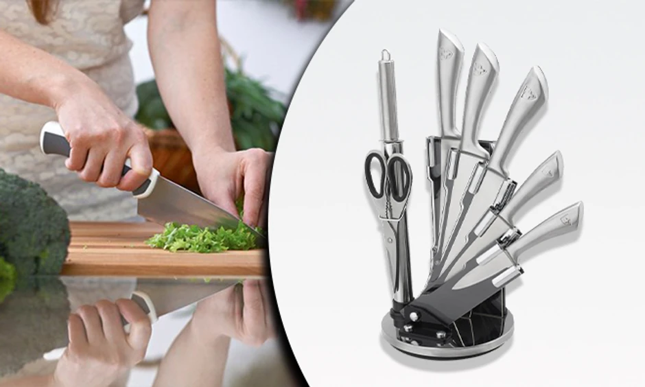 Uživajte u još lakšoj pripremi hrane zahvaljujući Royalty Line 8 u 1 setu noževa od nerđajućeg čelika. Ovaj set sa akrilnim postoljem, modernim i praktičnim za upotrebu savršeno će se uklopiti u vašu kuhinju, a može biti vaš za samo 2.799 dinara kupovinom na gruppi.rs.