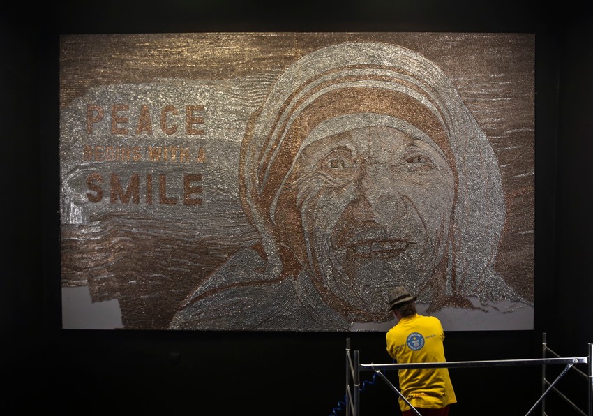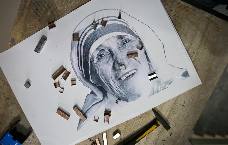Jedan albanski umetnik predstavio je u Prištini portret Majke Tereze napravljen od spajalica, pozivajući evropske zemlje da obustave podizanje ograda na granicama zbog izbeglica.