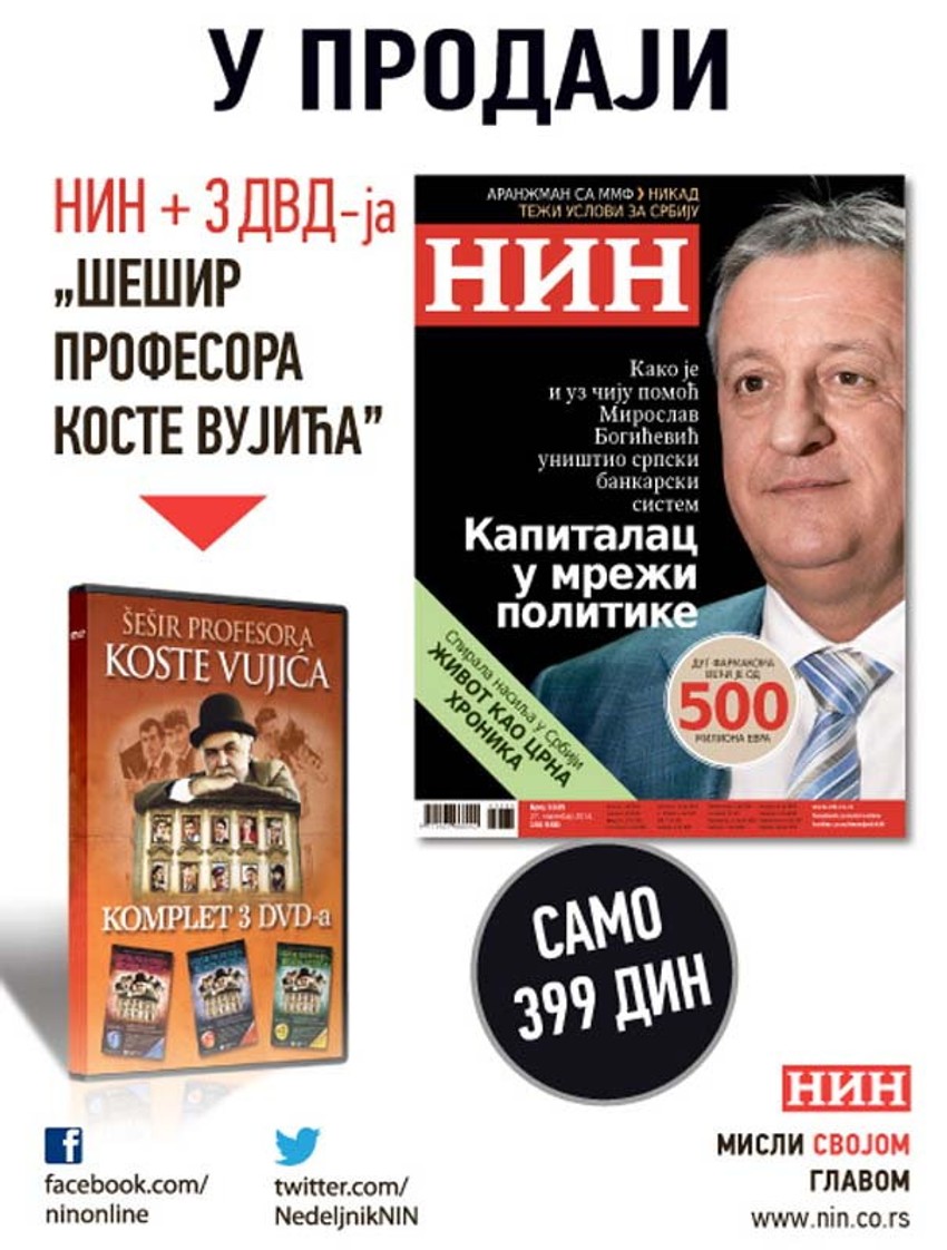 Ove nedelje u prodaji je NIN sa 3 DVD-ja “Šešir profesora Koste Vujića“ po ceni od samo 399 dinara. Reč je o igranoj seriji po romanu Milovana Vitezovića.