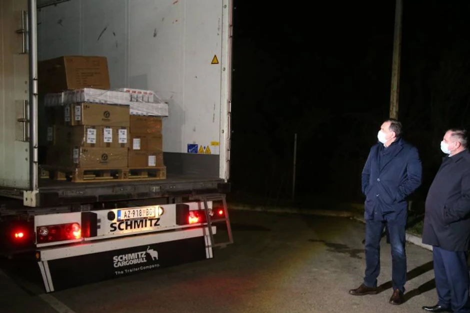 Na graničnom prelazu Rača večeras je u 19.15 časova prešao prvi kontingent pomoći Srbije za Republiku Srpsku, u borbi protiv virusa korona.
