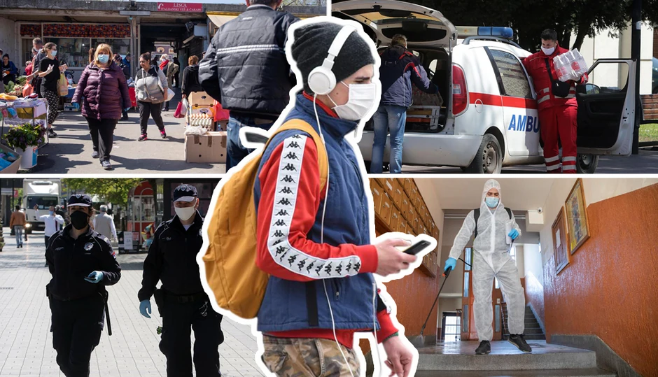 - U Srbiji je na snazi mera zabrane kretanja od 17, vikendom od 15, pa do 5 sati ujutru. Od 10. aprila na snagu je stupila dodatna zabrana kretanja - od petka u 17.00 do ponedeljka u 5.00. Ta zabrana ne važi za penzionere, koji imaju i dalje termin za odlazak u kupovinu u petak od 4 do 7 ujutro