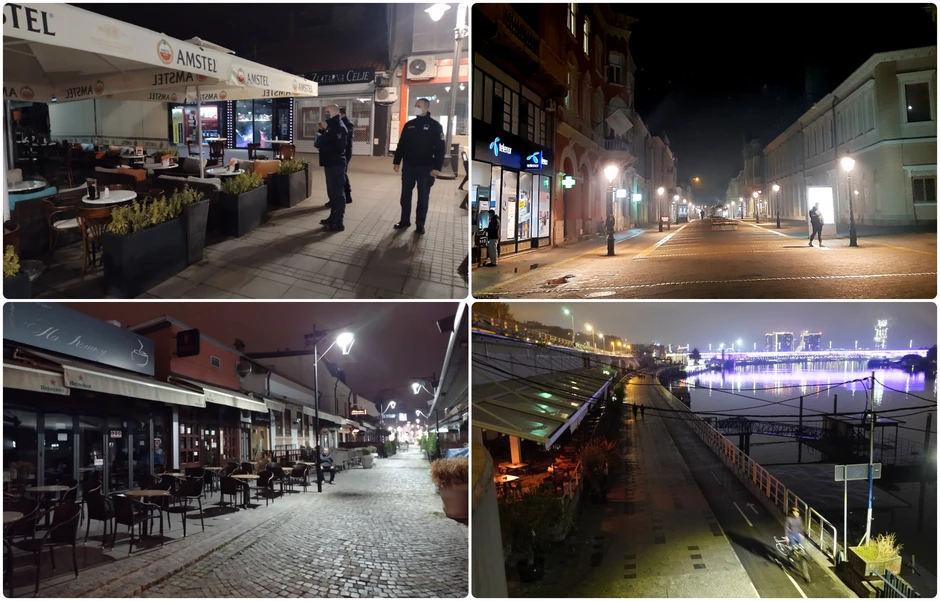 Nad gradom je maglovito, ulice su skoro potpuno prazne, tek po koji prolaznik može da se uoči u centru grada, u Ulici Korzo, dok je Ulica Matije Korvine, u kojoj se nalazi više popularnih kafe – restorana, posle dozvoljenog vremena za rad ugostiteljskih objekata potpuno utonula u tišinu. Kroz prozore su mogli da se vide zaposleni koji završavaju poslednje pripreme za završetak smene, dok su okolni parkinzi prazni.