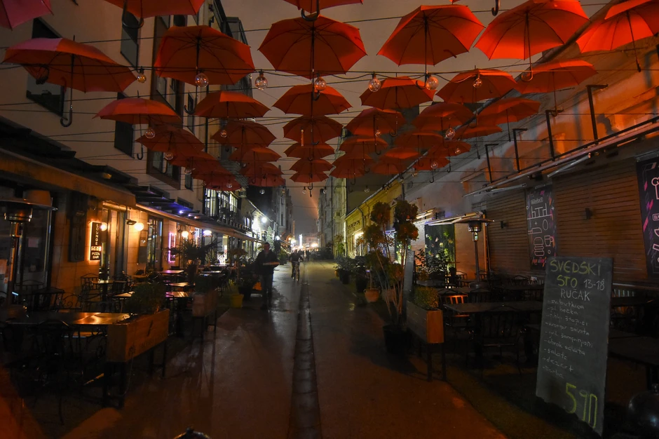 U kafićima i restoranima mogu se zateći samo radnici koji, nakon zatvaranja završavaju svoje smene, a klubovi u okviru Beton hale potpuno su pusti, sa izuzetkom tek po kojeg prolaznika, bicikliste ili po koje osobe koja je ugostiteljske objekte napustila tik pred zatvaranje. Ni saobraćaja ove večeri nema.