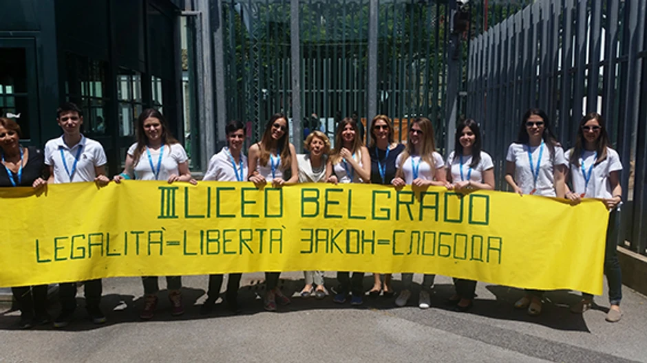 Delegacija učenika italijansko-srpskog dvojezičnog odeljenja Treće beogradske gimnazije učestvovala je juče u šetnji centrom Palerma, na obeležavanju 24 godine od masakra u kome je ubijen čuveni sudija Đovani Falkone.