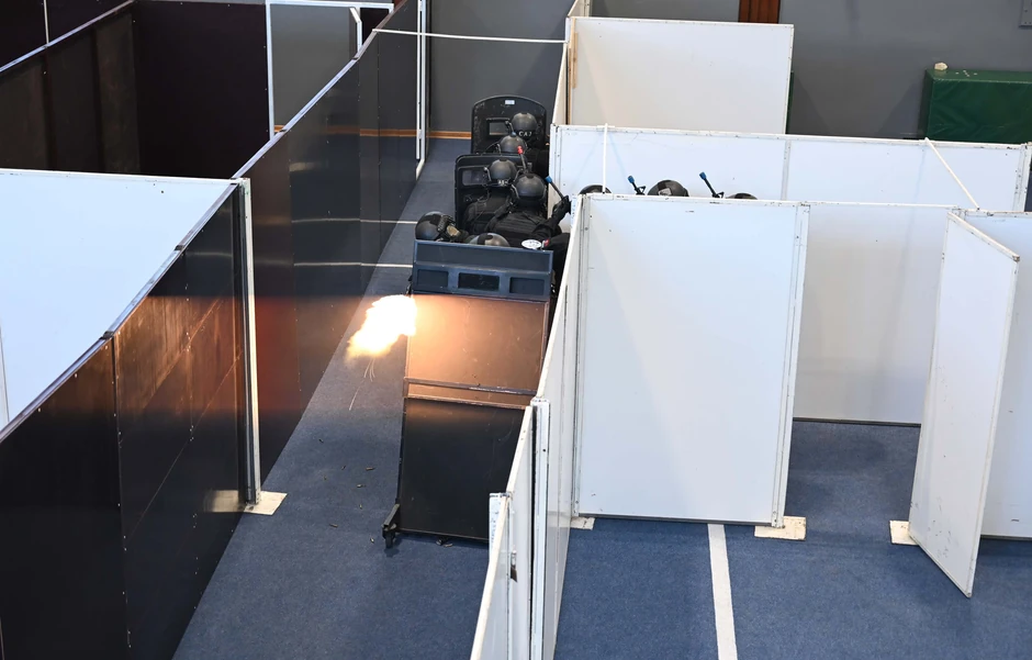 U pokaznoj vežbi pripadnici SAJ-a prikazali su akciju u rešavanju talačke situacije, primenom taktičke bliske borbe u zatvorenom prostoru.