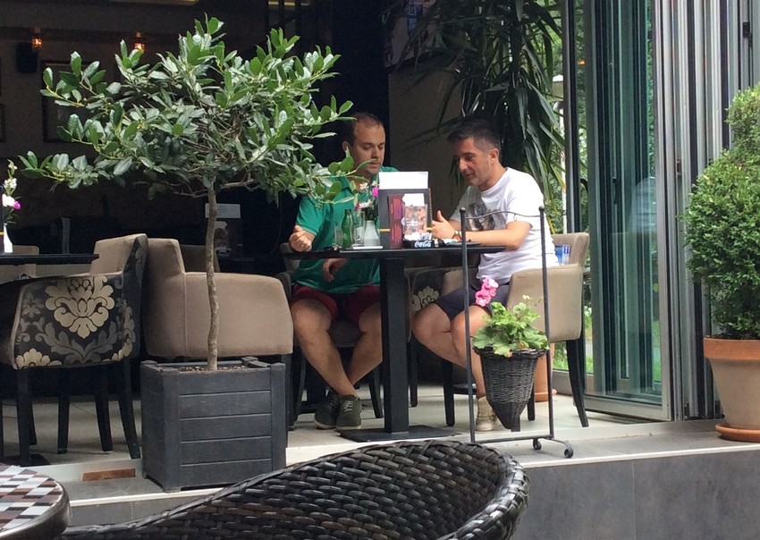 Darko Mitrović i Marko Stepanović, poznatiji kao Dare i Mare, fotografisani su u jednom kafiću na Novom Beogradu, gde su izgleda dogovarali novi zajednički projekat.
