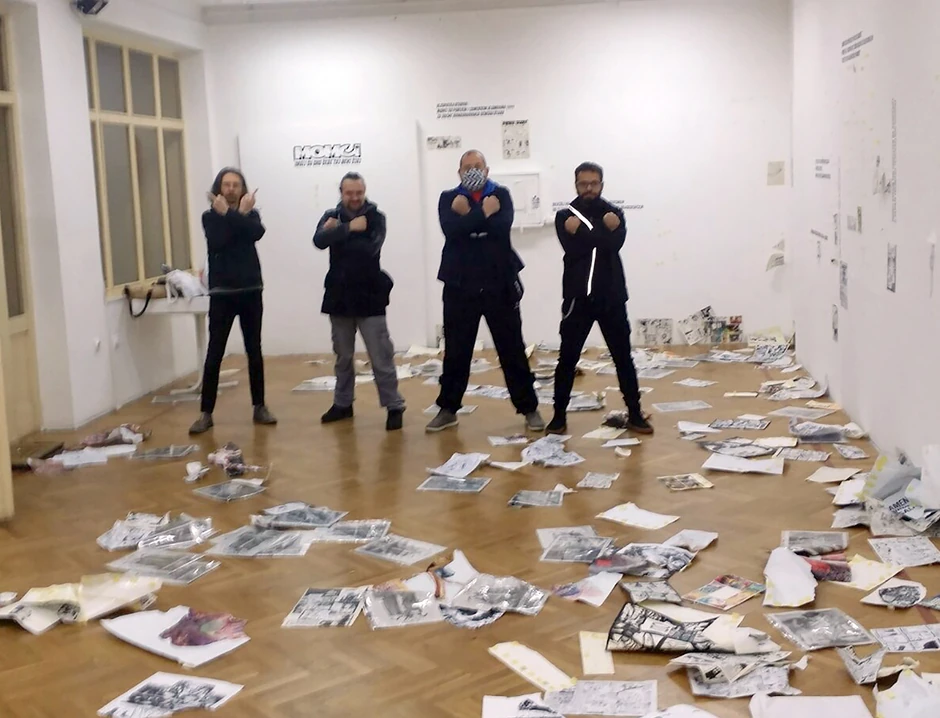 "Čin pretnji i napada govori da naše društvo u odnosu prema kulturi nije napredovalo, već postoje pokazatelji da čak i nazadujemo. Svesni smo ličnih senzibiliteta svakoga od nas i činjenice da umetnički izraz, u ovom slučaju crnohumorni andergraund strip, ne izaziva pozitivne emocije kod svakoga, ali izbor nikada ne sme biti nasilje i obračun", navodi se u saopštenju i dodaje da "nema slobode govora bez slobode da se slobodno izrazimo, a sloboda govora je jedno od osnovnih ljudskih prava".
