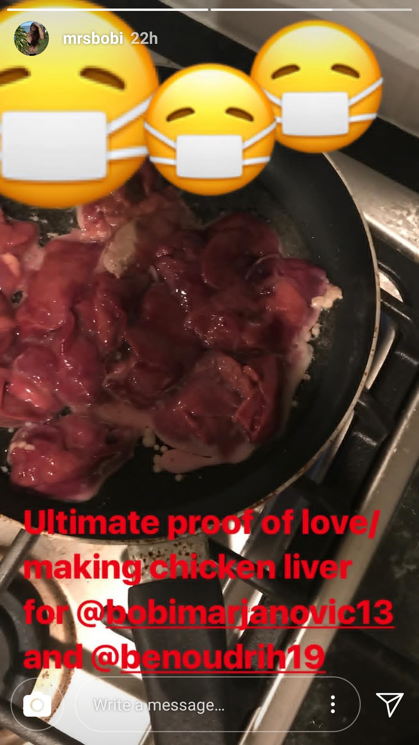 Milica je na Instagram storiju podelila momenat iz kuhinje. Na fotografiji tiganja u kojem se prže pileće džigerice napisala je, uz mnošto emodžija koji nose maske (zbog specifičnog mirisa, valjda):