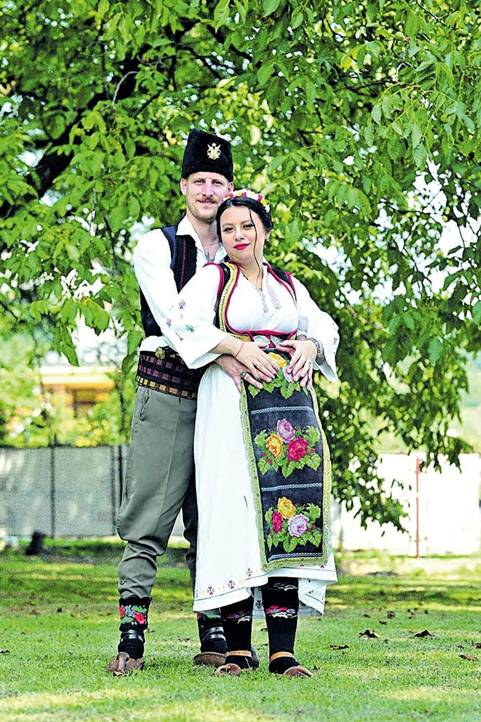 - I mi ćemo večno pamtiti naše venčanje i do groba ostati jedno uz drugo! I mi smo se obukli kao što su mladenci oblačili, ali pre nego što se ukorenilo nešto što nije naše. Tako je i po pitanju svadbene odeće i po izboru muzike, hrane. Silne pare iz pomodarstva dadoše za rentiranje skupocenog automobila koji će mladence, eto, prevesti od kuće do opštine, crkve, sale. Ako je automobil besniji, ako je venčanica raskošnija, smoking brendiran i skuplji – da li to znači da će se supružnici više voleti? Iz porodice sam koja zna ko je i šta je i koja drži do tradicije. Odenuli smo narodne nošnje pre svega jer smo Srbi, a priznajem, i zbog revolta prema uveženim običajima - iskreno će mladoženja Marko Ostojić.