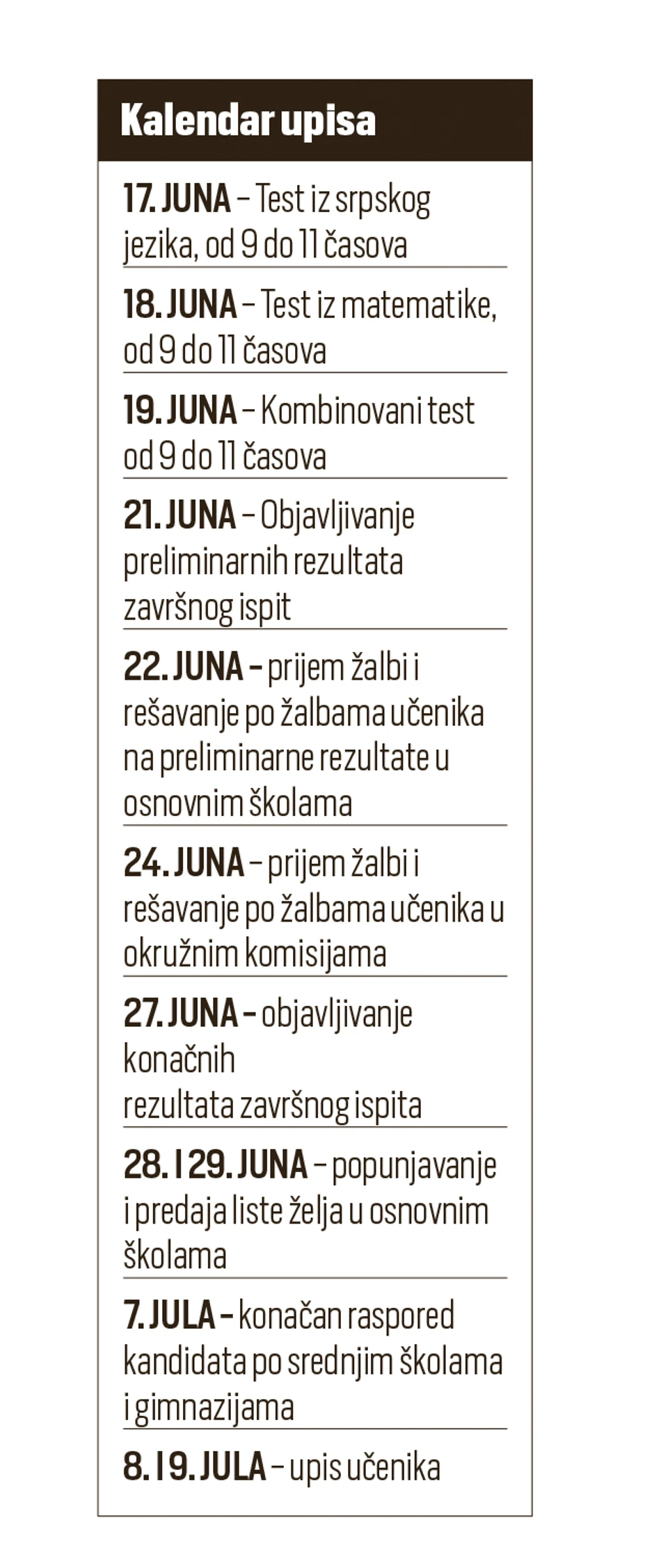 Oproštajne ekskurzije u maju, maturske večeri i prijemni ispit u junu, učinili su da se stvori pritisak na njih jer je odabir srednje škole i te kako važan zadatak.