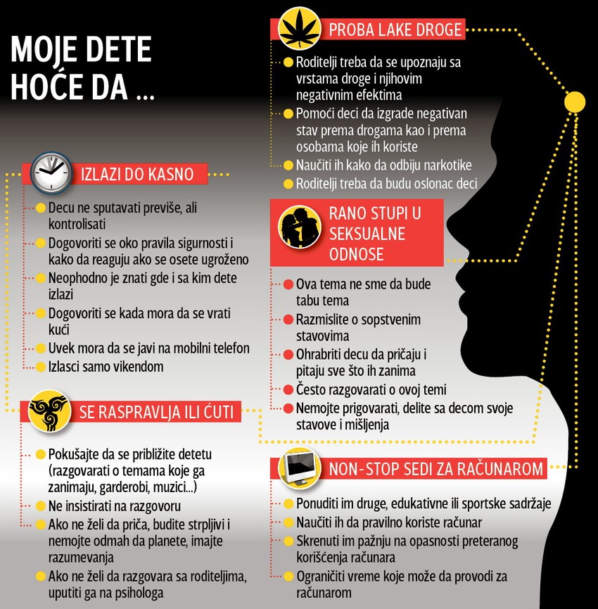 Strah od noćnih izlazaka, raznoraznih hirova, droga i stupanja u seksualne odnose samo su neki od problema sa kojima se suočavaju roditelji starijih osnovaca i dece na pragu adolescencije.