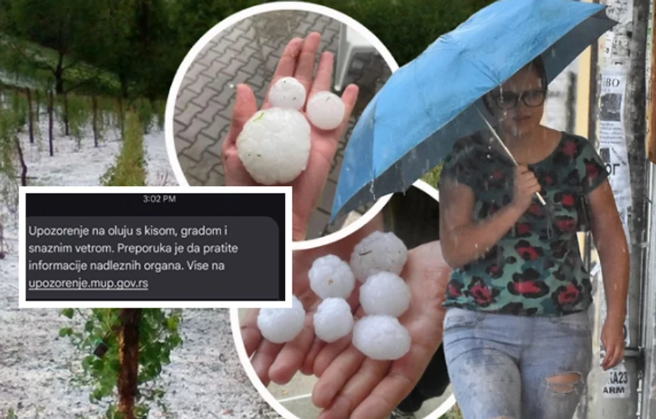 U poruci stoji: „Upozorenje na oluju s kišom, gradom i snažnim vetrom. Preporuka je da pratite informacije nadležnih organa. Više na upozorenje.mup.gov.rs“