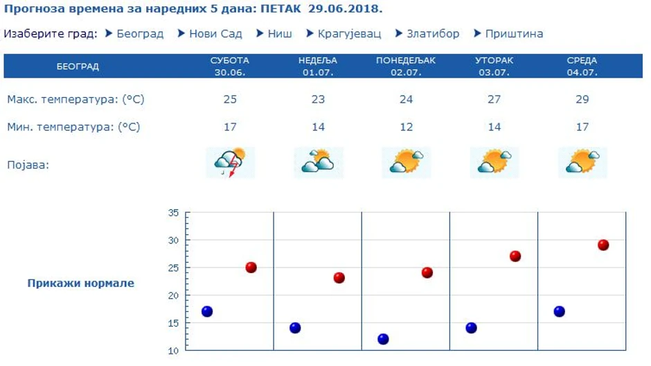 Izgledi vremena za Srbiju u narednih sedam dana