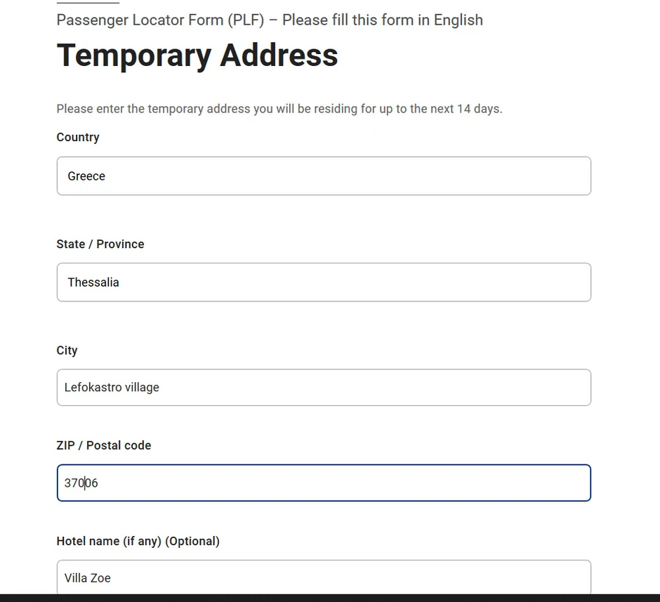 Zatim je potrebno uneti tačnu adresu hotela, apartmana ili kuće/stana gde ćete boraviti u Grčkoj, kao i regiju (takodje ponuđena u meniju) i poštanski kod, koji možete pronaći jednostavnom pretragom na internetu.