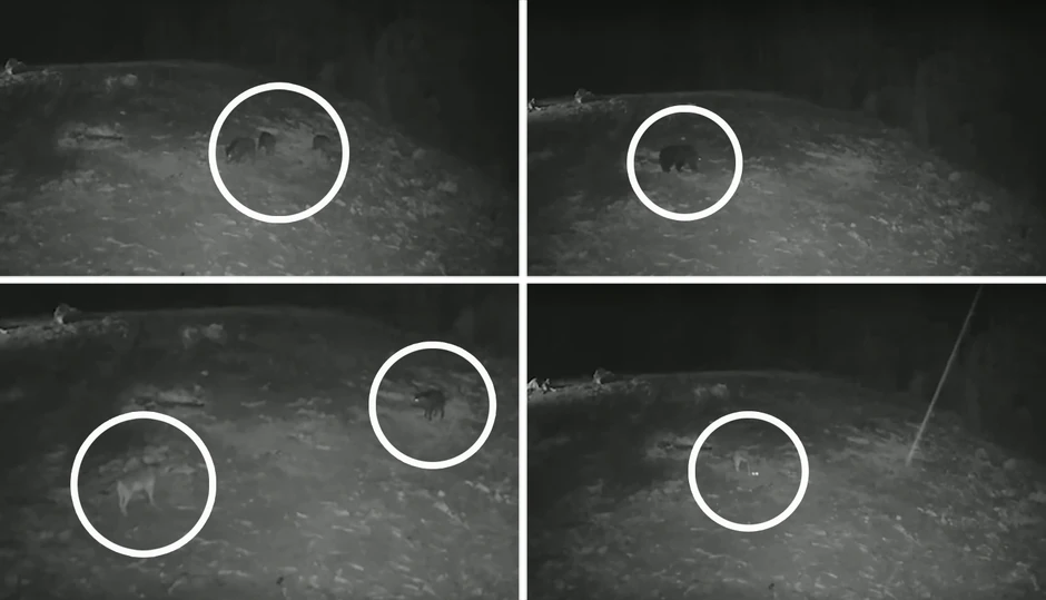 Divlja svinja ipak nije sama večerala. Pošto je opasnost prošla iz šume je izašla još jedna odrasla jedinka iste životinjske vrste i jedno prase. Tri divlje svinje natenane su pojele servirano.