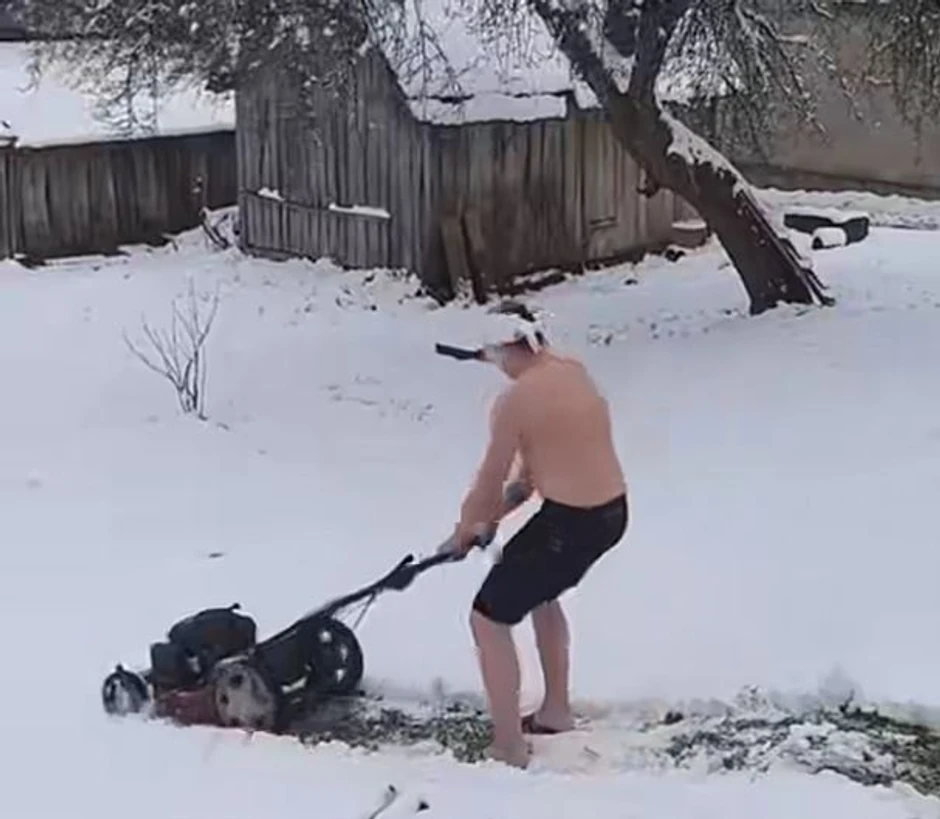 Proleće je uveliko tu, a ovi vredni domaćini nisu dopustili da ih iznenadni sneg omete u redovnom održavanju dvorišta. Pod punom opremom, kosilice i trimera prkosili su snežnom pokrivaču.