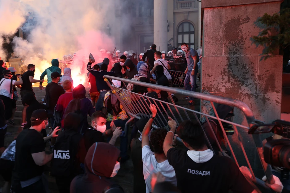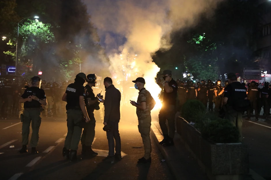 I jučerašnju noć, baš kao i onu pre nje, obeležili su neredi i nasilje u glavnom gradu Srbije. Protesti koji su počeli oko 18 sati i vrlo brzo prerasli u pravi ulični rat, tokom kojeg su ispred zgrade Skupštine i u okolnim ulicama viđene brutalne scene. Napadnut je predsednik Pokreta slobodnih građana Sergej Trifunović koji je zaradio povredu glave. Kako je kasnije izjavio, misli da su ga napali pripadnici ultradesničarske organizacije Levijatan.