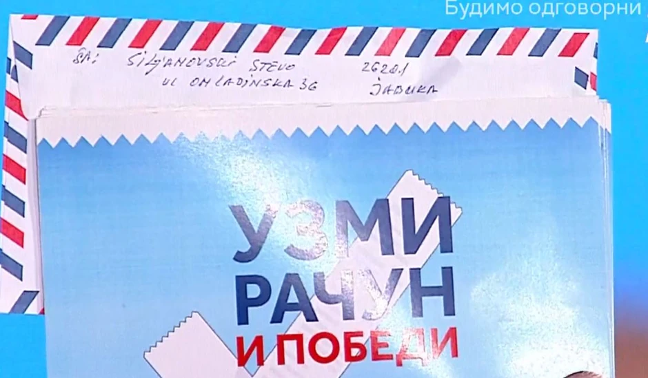 Na poleđini koverte neophodno je napisati ime i prezime, adresu iz ličnih dokumenata i kontakt telefon, dok je na drugoj strani dovoljno napisati "Uzmi račun i pobedi 2020".