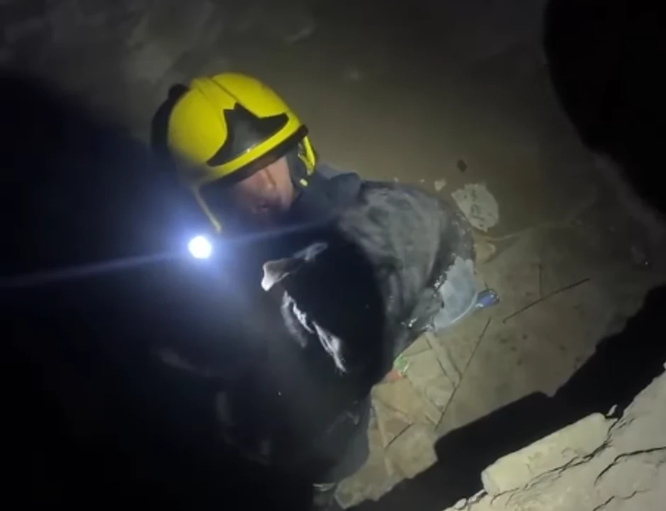 Pas je mirno čekao spasavanje, mašući repom i gledajući u pravcu baterijske lampe vatrogasaca.