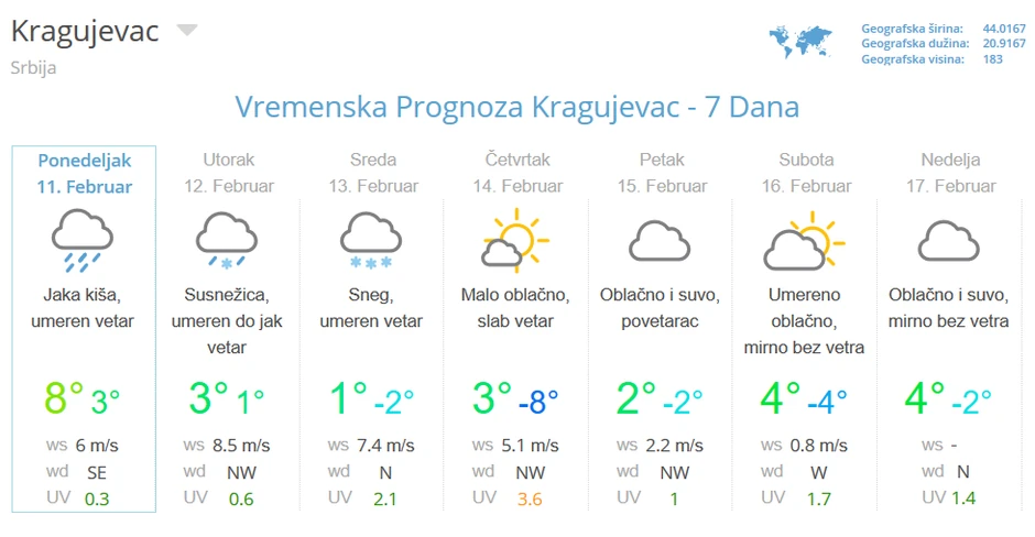 - Tokom većeg dela dana na severu zemlje biće sunčano, a u ostatku države promenljivo oblačno vreme. Slaba kiša, susnežica i sneg mogu se očekivati na jug i zapadu zemlje. Maksimalna dnevna temperatura iznosiće između 0 stepeni na jugu i 5 stepeni na severu zemlje - objašnjava Đurić.
