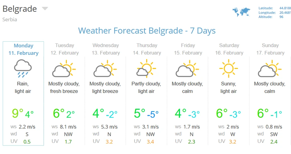 Tokom predstojećeg vikenda, prema rečima meteorologa Đorđa Đurića, očekuje nas suvo vreme bez padavina, a maksimalna dnevna temperatura kretaće se od 3. do 9. podeoka.