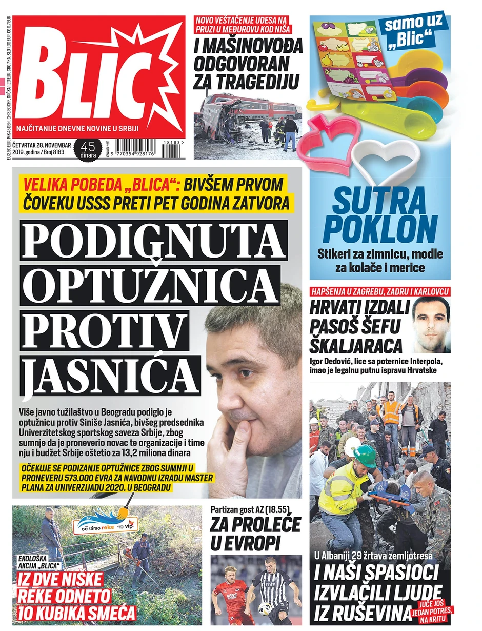 I pored dokumentacije koju smo imali, Jasnić je, umesto dokaza, javnosti ponudio uvrede na račun "Blica". Otišao je čak toliko daleko da je naš list nazvao "najvećim zlom u Srbiji, zbog čijeg pisanja mogu da nam oduzmu Univerzijadu". Igre zbog pisanja "Blica" nisu oduzete, ali pokretanjem optužnice jeste oduzeta mogućnost Jasniću da i dalje nekontrolisano troši državni novac.