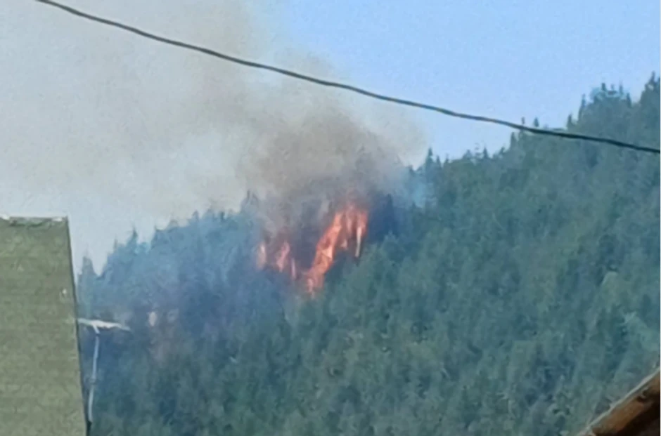 Kako se vidi na fotografiji, vatra je trenutno aktivna u okolini Ravne gore, u neposrednoj blizini granice, gde vatrena stihija guta šumu i nisko rastinje i preti zaseoku Strmetice. Zbog konfiguracije terena i vetra, plamen se širi i približava četinarskoj šumi, poznatoj po svojoj biološkoj raznolikosti i prirodnoj vrednosti.