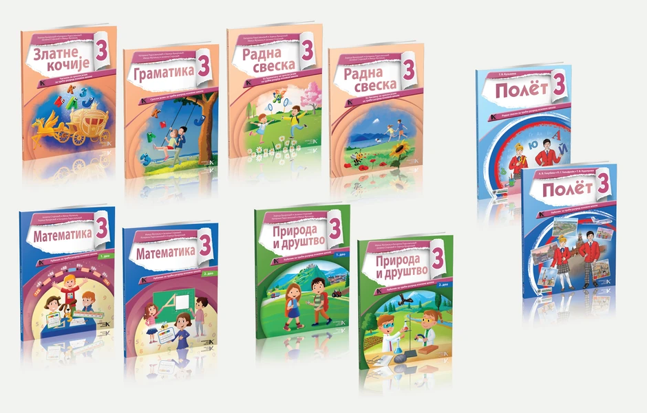 Rešenja Ministarstva za upotrebu u nastavi dobili su udžbenici za treći razred OŠ iz Matematike, Prirode i društva, kao i komplet za Srpski jezik koji se sastoji od Čitanke, Gramatike i Radne sveske uz Čitanku i Gramatiku.