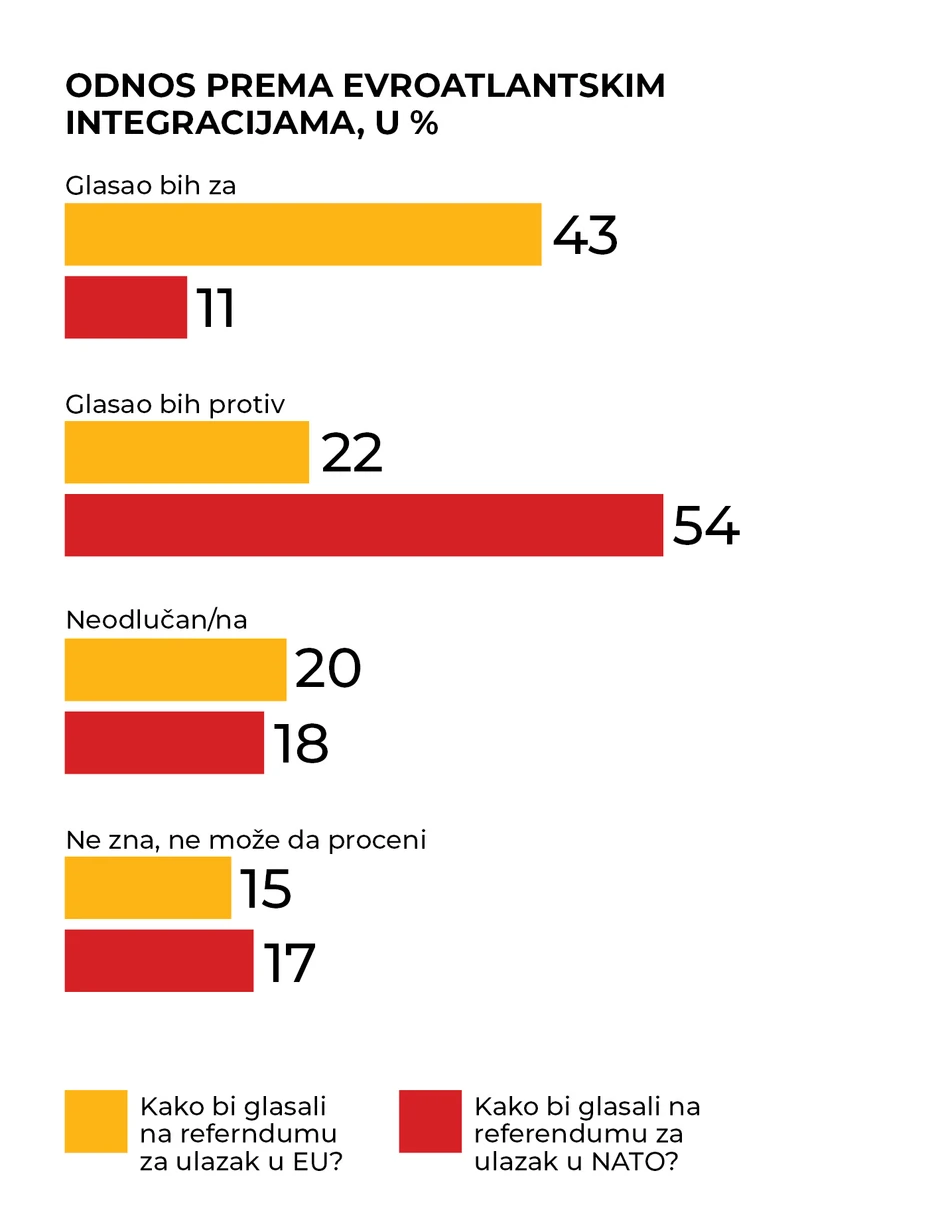 Mladi u Srbiji imaju i jasno definisane stavove prema evroatlantskim integracijama. Duplo više mladih u Srbiji ima želju da njihova zemlja jednog dana postane deo Evropske unije u odnosu na one koji se protive toj ideji.