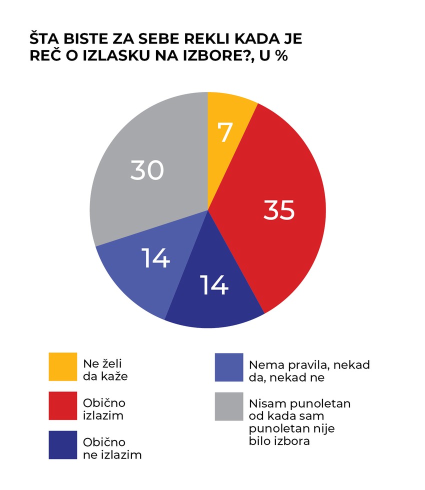 Kako navodi Cesid, ovakva percepcija političkog trenutka je uslovila i to da među mladim ljudima tek svaki treći tvrdi da redovno učestvuje u izbornom procesu, dok je kod preostalih ispitanika izlazak na izbore uslovljen trenutnom motivacijom, a ne željom da se izbore za sebe i svoj glas.