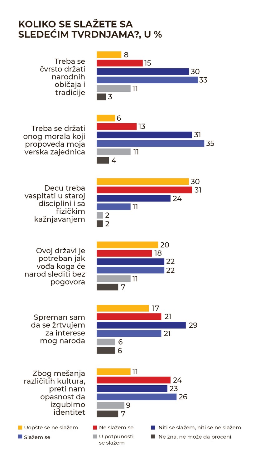 - treba se čvrsto držati narodnih običaja i tradicije (zbirno 44%)