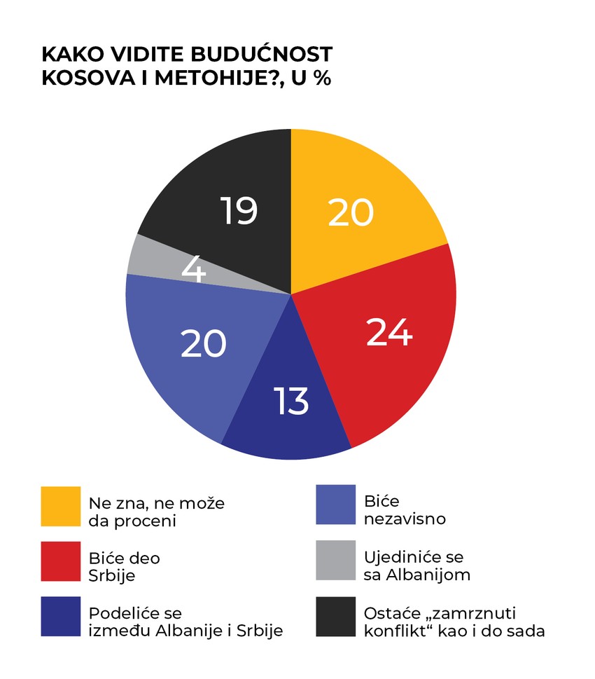 Ipak, iako većina mladih nije spremna da ratuje za ostanak Kosova i Metohije u Srbiji, najveći procenat ispitanika se i dalje nada da će južna pokrajine ostati u sastavu Srbije, a nešto manje njih veruje da nas čeka dugogodišnji zamrznuti sukob koji neće biti rešen tako lako.