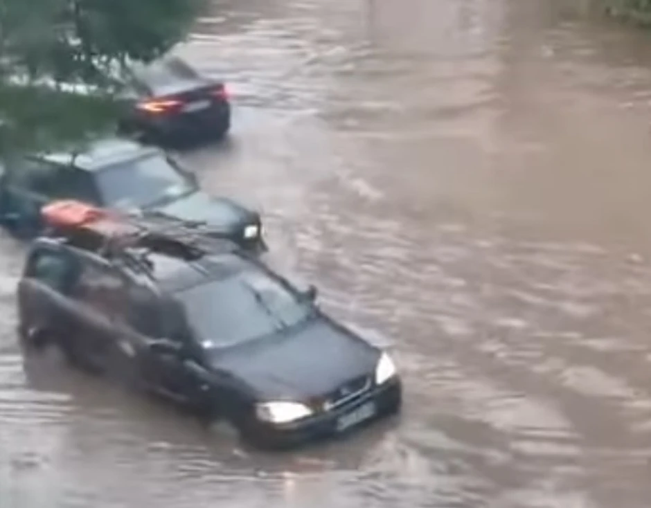 Automobili se jedva probijaju kroz bujice vode, dok su neki ostali zaglavljeni.