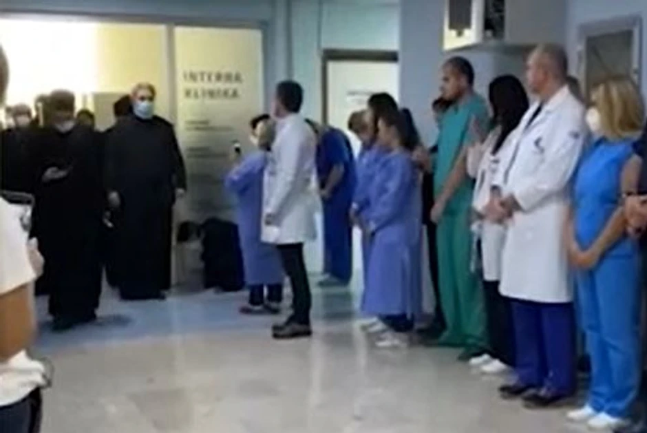 Amfilohija su ispratili zdravstveni radnici koji su, u suzama, stajali u špaliru, a ispred KC Crne Gore dočekao ga je verni narod.