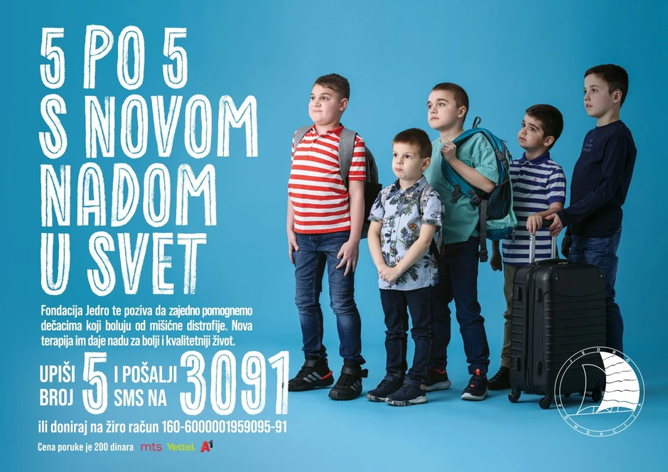 Kako su istakli u Fondaciji "Jedro" ova petorica mališana „odabrani” su zbog progresivnog širenja bolesti, a pre svega zbog nemogućnosti da se primeni neka od postojećih terapija koje bi obnovile proizvodnju nedostajućeg proteina. Fondacija će i nakon prikupljanja sredstava za petoricu dečaka nastaviti, kroz različite aktivnosti, da pomaže i ostale dečake obolele od Dišenove mišićne distrofije u Srbiji i da im otvara put za ovu ili neke druge spasonosne terapije.