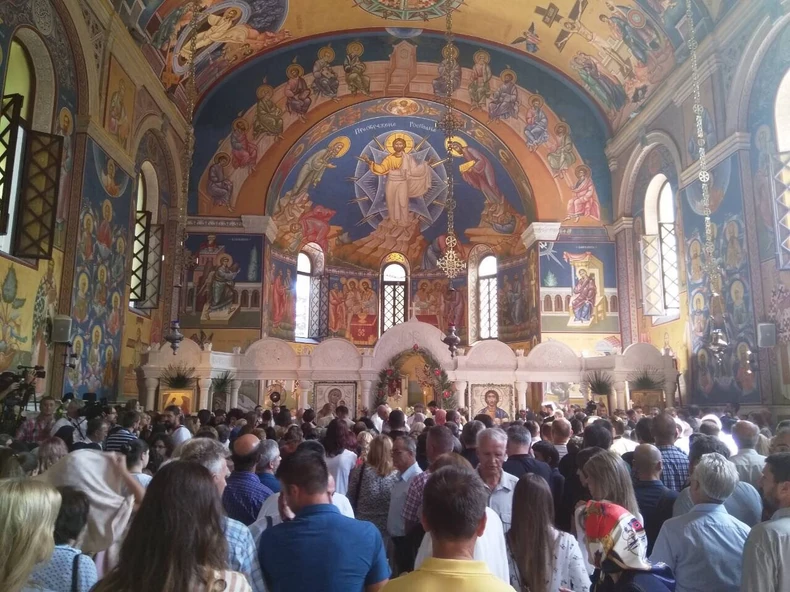 Danas na ustoličenju novog vladike zahumsko - hercegovačkog Dimitrija (Rađenovića)- koga je na to mesto pre odlaska u Eparhiju nemačku na Saboru predložio vladika Grigorije- ispred hrama su postavljena dva velika video bima. Nekoliko hiljada ljudi, oni koji nisu mogli da uđu u prepunu crkvu pažljivo prate svečani čin hirotonije i ustoličenja. Gotovo da nema šuma na trebinjskom gradskom trgu. Nijednog, osim pojanja, besede novog vladike Dimitrija. U jednom trenutku govori i vladika Grigorije: