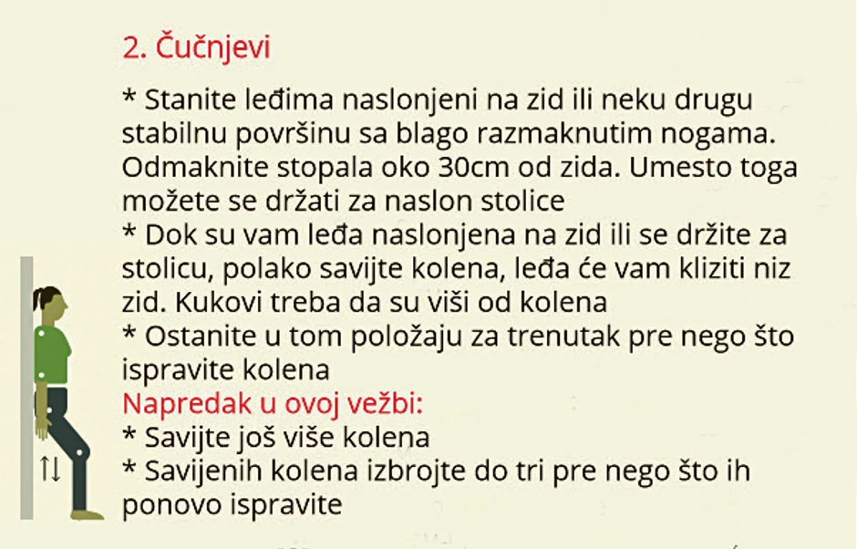 - Praktikujte zagrevanje svaki put pre vežbanja i istezanje nakon vežbi;