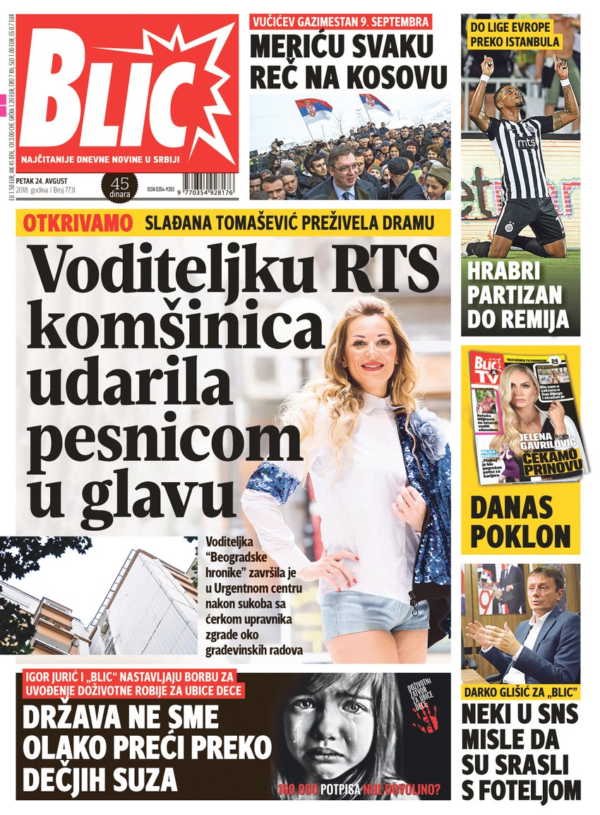 Poznata voditeljka pretrpela je veliku neprijatnost praktično na svom kućnom pragu. Do napada je došlo kada je komšinica, ćerka upravnika zgrade, zatekla Slađanu kako sa vrata lifta skida obaveštenje pristiglo iz inspekcije, piše u sutrašnjem štampanom izdanju "Blica".