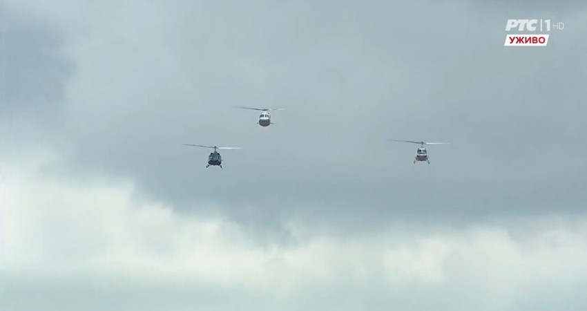 11.44 - "Đavolje kočije" na nebu iznad Niša - Dok je trajao defile vojnih i policijskih jedinica, mesto održavanja parade nadletali su helikopteri MUP-a, koje mnogi nazivaju "Đavolje kočije", zbog sposobnosti i performansi koje imaju.