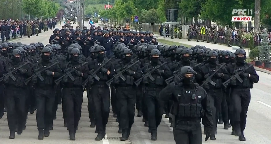 11.40 - Pokazala se i policija - Nakon pripadnika vojske, defilovuju jedinice MUP-a Srbije, od antiterorističkih, preko Žandarmerije, do interventne i jedinice za obezbeđenje.