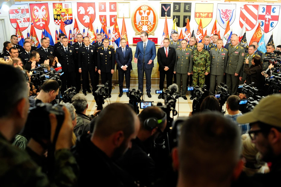 9.50 - Vučić: Povećanje plata u vojsci i policiji - Svečanosti prisustvuje i srpski predsednik Aleksandar Vučić, koji je već u Nišu, gde se sastao sa komandantima jedinica Vojske Srbije, Ministarstva unutrašnjih poslova i resornim ministrima.