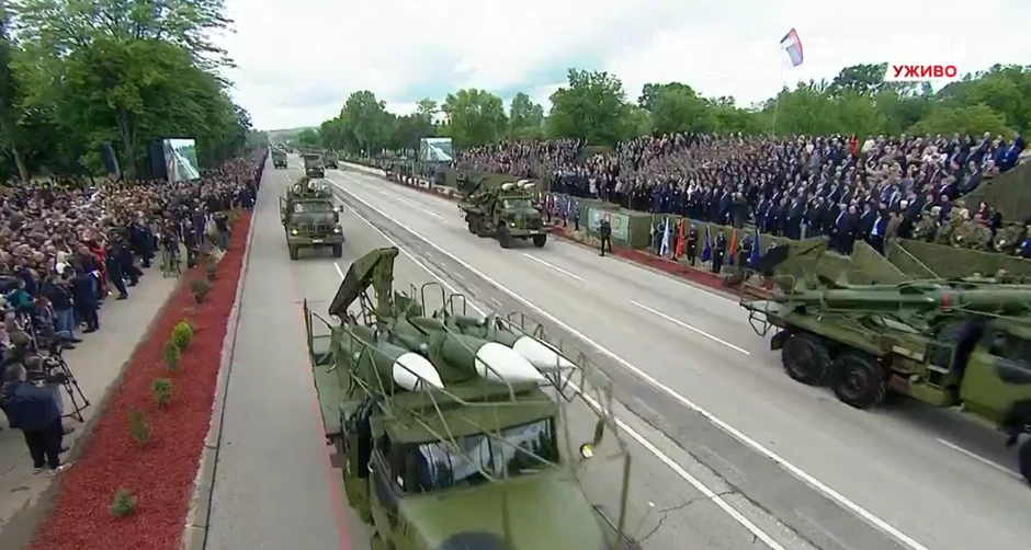 11.54 - Prikaz vojnih vozila - Prikazana su vojna vozila vojske Srbije, među kojima su bila i ona koja su nosila rakete kojima je tokom NATO bombardovanja oboren avion F-16.