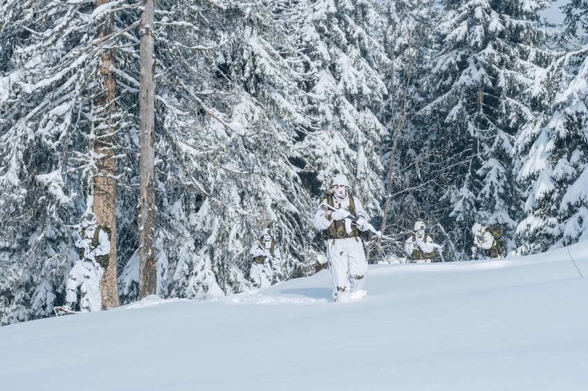 Vojnici na dobrovoljnom služenju vojnog roka generacije "septembar 2021" koji su nakon prve faze obučavanja raspoređeni u 63. padobransku brigadu ove nedelje na Kopaoniku realizuju obuku u zimskim uslovima.