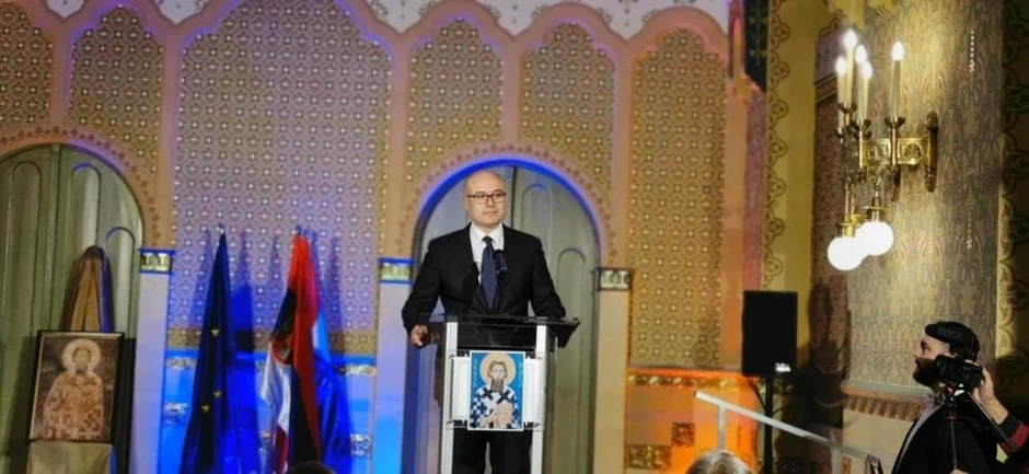 - U danima koje posvećujemo jednoj od najsvetlijih i najsvetijih ličnosti u istoriji srpskog naroda Svetom Savi – našem uzoru čovečnosti, čast mi je što u ime predsednika Srbije Aleksandra Vučića, kao njegov izaslanik, imam priliku da vam se obratim, da vam čestitam Savindan i da ga proslavimo zajedno. Čovek svetac, izvanredne energije, vanredne inteligencije, uporne volje - Sveti Sava, govorio je ko smo mi Srbi, o čemu treba da učimo, kakvi treba da budemo, i kuda treba da idemo. Učio nas je pravim vrednostima, i veličini naizgled malih stvari. I ako čvrsto koračamo po putu sazdanom od vanvremenskog učenja i predanja tog mudrog čoveka, ne možemo a da i sami ne budemo veliki. Možda nas Srba danas i nema puno u Mađarskoj, ako se merimo sa nekim ranijim vremenima. Ali naš narod u Mađarskoj ima jednu od najdužih tradicija obeležavanja Savindana, od svih naših Srba u rasejanju. Želimo da naša deca nauče da se kultura i istorija razumeju i poštuju, da hrabro gaze napred putem Svetosavlja, a ako i naiđu na neku prepreku, da rešenje i oslonac traže u našoj pravoslavnoj veri – rekao je Miloš Vučević.