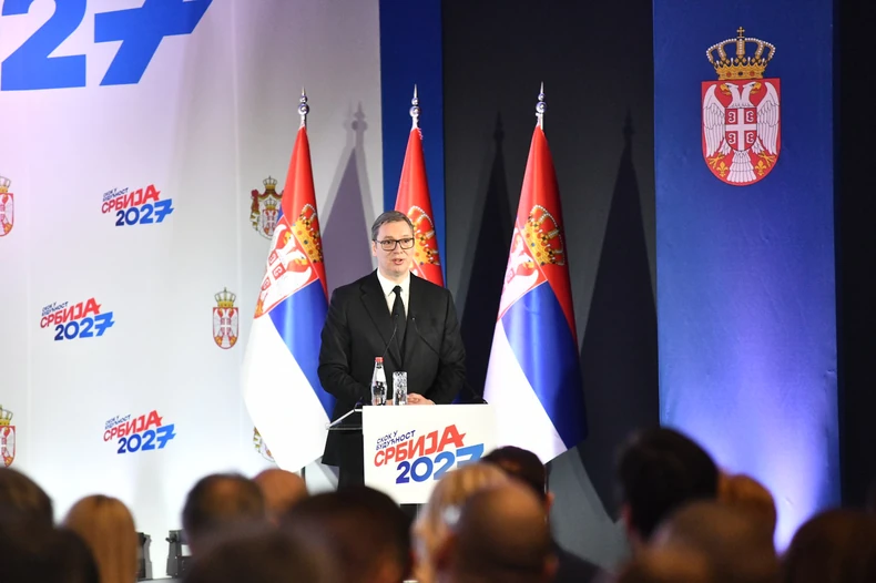 "Ovo je veliki dan za Srbiju", rekao je Vučić na početku obraćanja i istakao da je na ovom planu Vlada radila mesecima. Kako je rekao, plan podrazumeva projekte u naredne četiri godine, a kako je istakao, plan je da u decembru 2027. godine prosečna plata u Srbiji bude 1.400 evra, a penzije 650. Najavio je veću pomoć za roditelje.