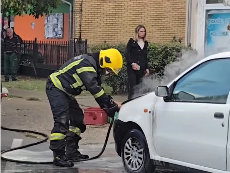 Kako se može videti na snimku, dim se širio iz automobila, dok su vatrogasci gasili izvor požara u prednjem delu vozila, tačnije haube.