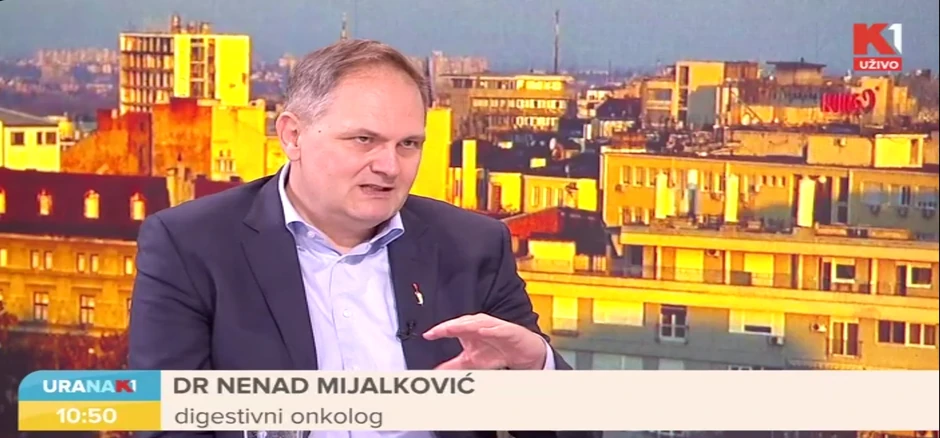 Od raka debelog creva u Srbiji godišnje oboli 4.500 ljudi, a umre više od 200. Među obolelima je sve više žena. Ovog jutra u „Uranku“ na televiziji K1 o najučestalijem kanceru u našoj zemlji govorio je digestivni onkolog dr Nenad Mijalković i istakao da su uprkos pandemiji kovida terapije zračenja bili redovne.