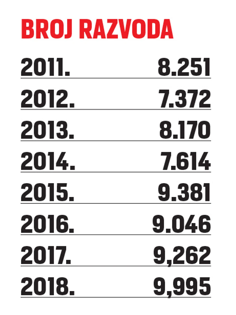 Advokati objašnjavaju da brakovi najčešće pucaju ako par nema dece, ako ima elemenata porodičnog nasilja ili pak dođe do prevare. Najčešće se dešavaju razvodi u rasponu između pete i sedme godine zajedničkog života, ali ima i primera kada dođe do razvoda i posle 20 godina braka.
