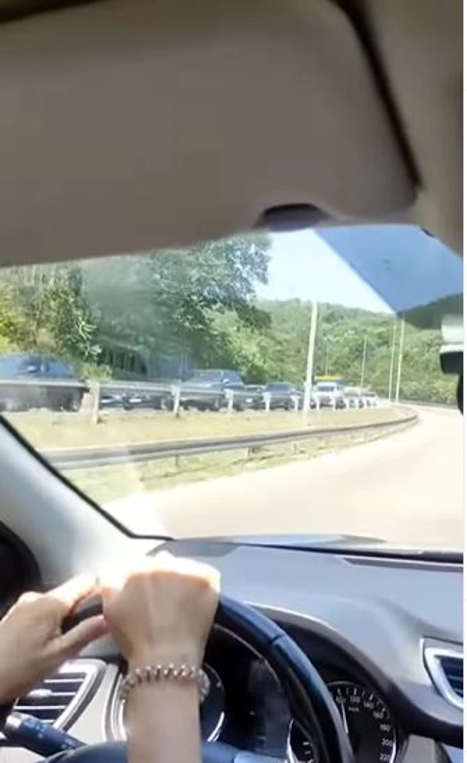 Kakva je situacija može se videti na snimku, na kome se vidi veliki broj vozila u dve kolone koja stoje u mestu.